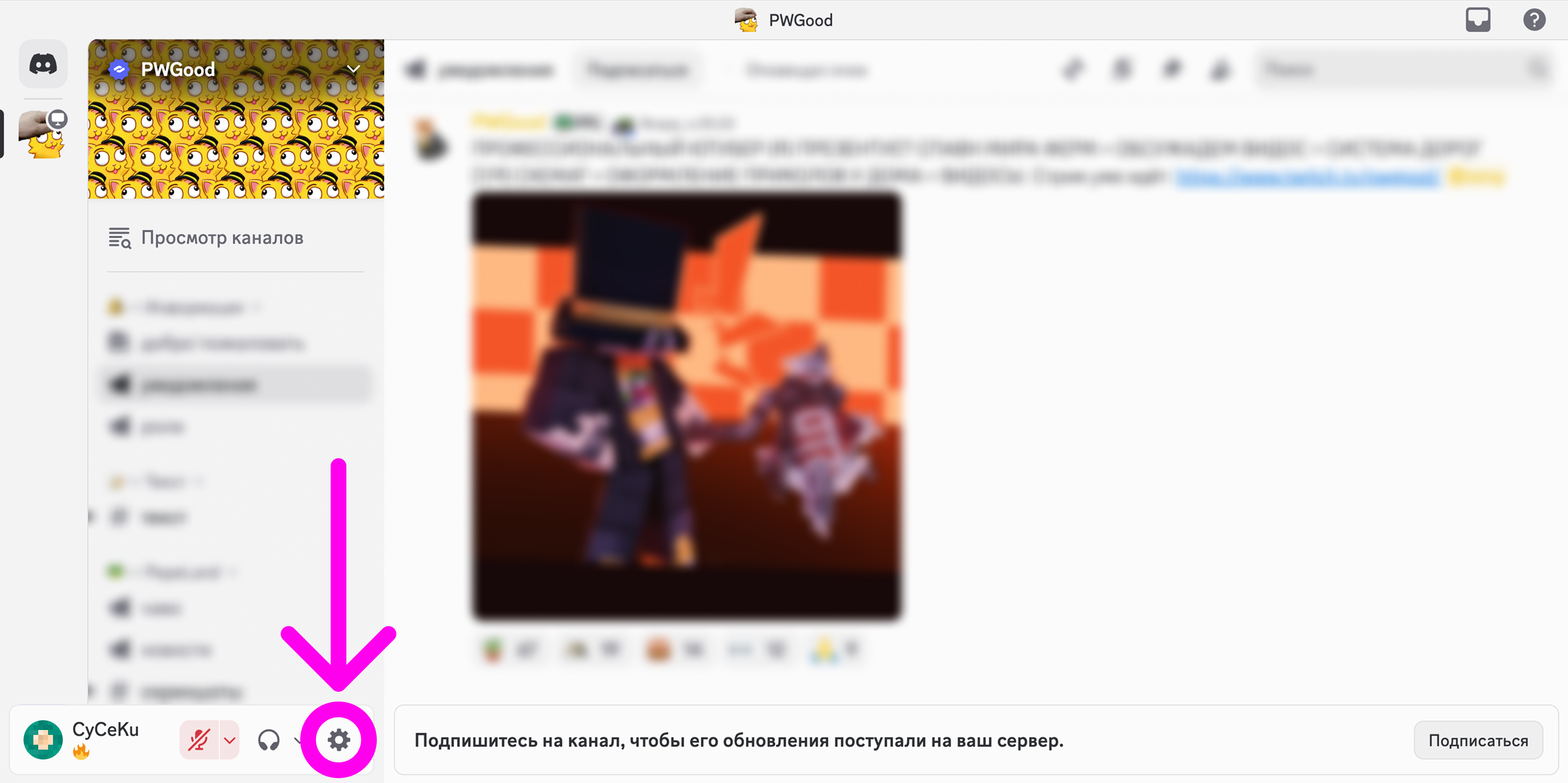 Кнопка настроек отображается в интерфейсе возле вашего профиля, в левом нижнем углу